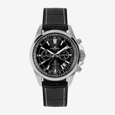 Jacques Lemans Mens Black Leather Strap Watch Wjl0027606