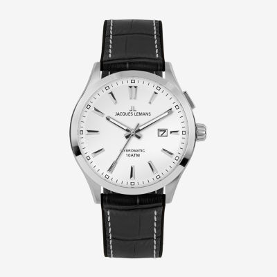 Jacques Lemans Mens Black Leather Strap Watch Wjl0027606