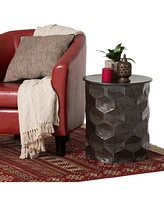 Bring about a bold styling revolution in your space with this unique side table. Its hand-crafted cylindrical body is finished in a rich antique bronze finish that accentuates its chic honey comb design. A lift-off lid adds functionality by allowing you to access spacious interior storage.
