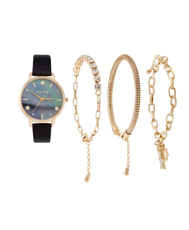 Jessica Carlyle Women's Black Faux-Leather Strap Watch 34mm Gift Set