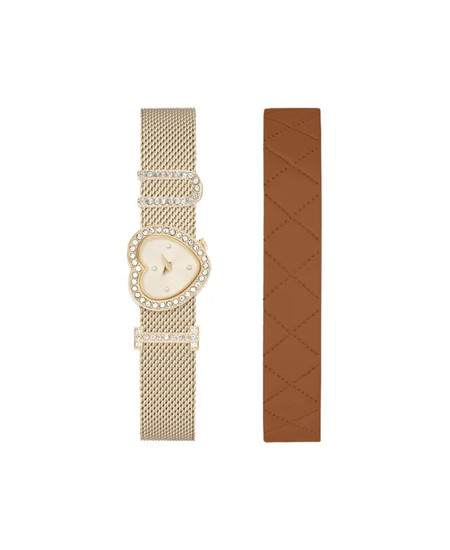 Jessica Carlyle Women's Shiny Gold-Tone Bracelet Analog Watch 21mm with Interchangeable Leather Strap