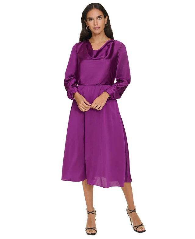 Jessica Howard Petite Cowl-Neck Long-Sleeve Fit & Flare Dress