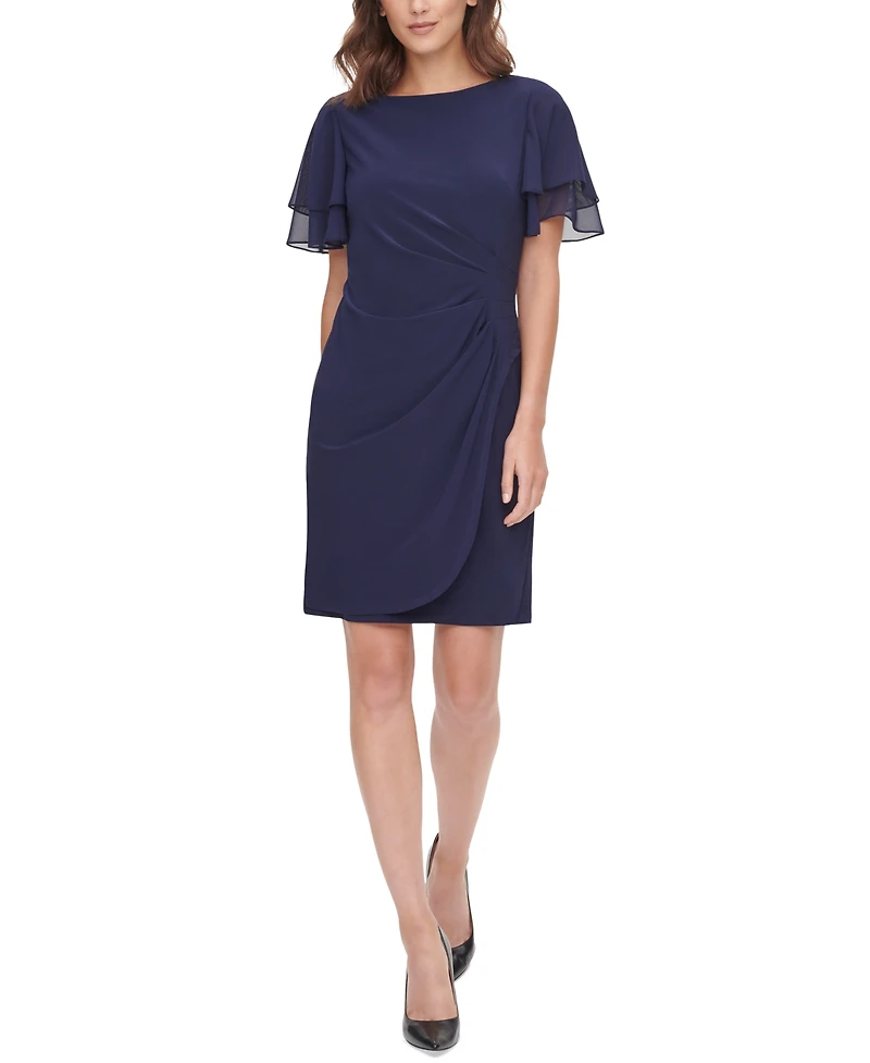 Jessica Howard Petite Flutter-sleeve Sheath Knee Length Dress