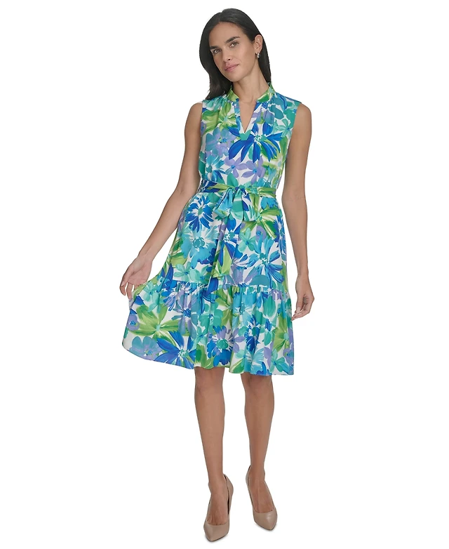 Jessica Howard Petite Printed Tie-Waist Tiered Dress