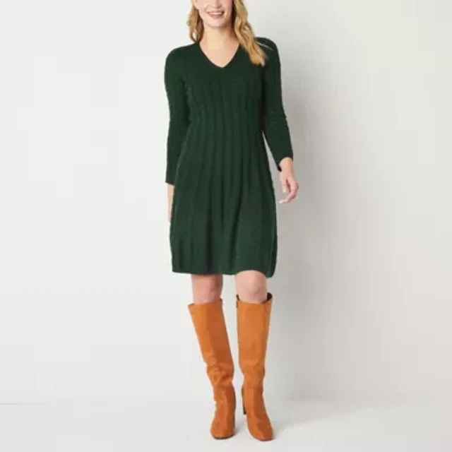 Jessica Howard Womens 3/4 Sleeve Sweater Dress