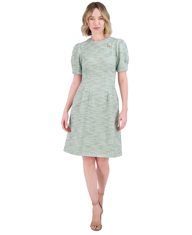 Jessica Howard Women's Boucle Magic-Waist Puff-Sleeve Dress