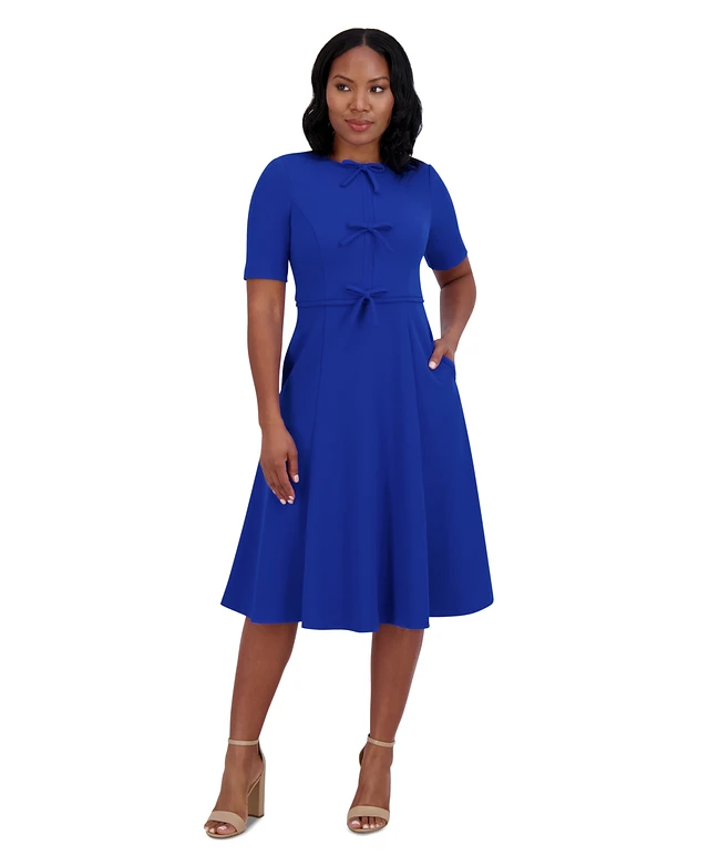 Jessica Howard Women's Bow-Trim Fit & Flare Dress