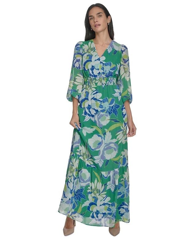 Jessica Howard Women's Printed Puff-Sleeve V-Neck Maxi Dress