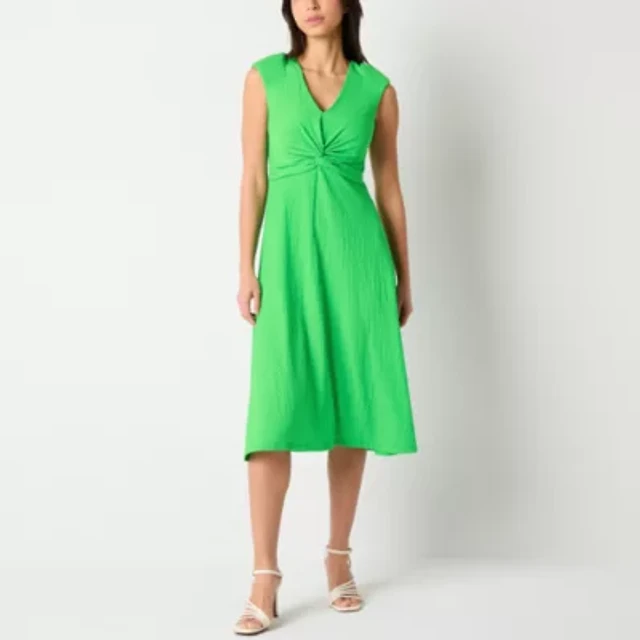 Jessica Howard Womens Sleeveless Midi Fit + Flare Dress