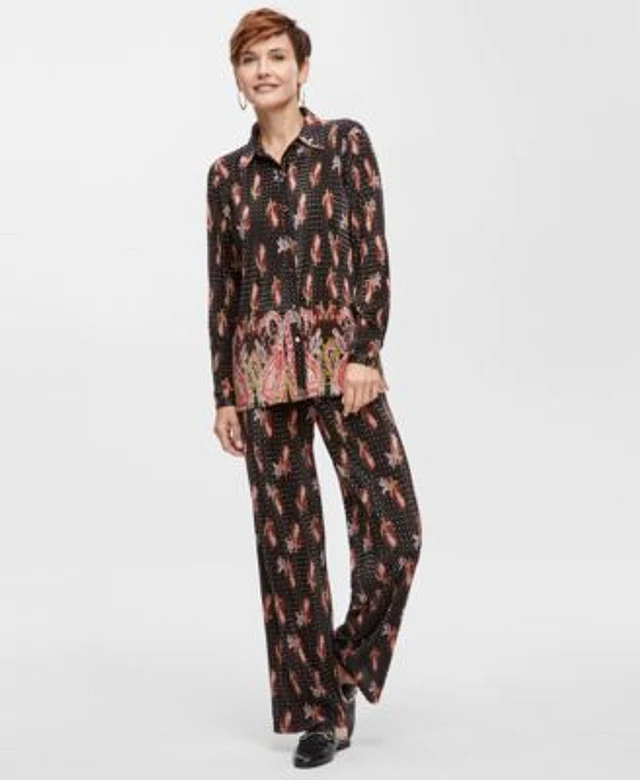 Jm Collection Womens Paisley Pleated Shirt Pull On Pants Created For Macys