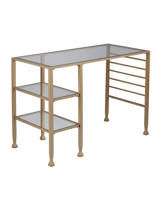 Tribesigns Computer Desk with Two Drawers, Modern Study Writing Desk with Storage, Makeup Vanity Table Office Desk with Gold Metal Frame for Home Offi