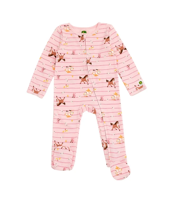 John Deere Baby Girls Animals Ribbed Zip Up Sleep N' Play Coverall