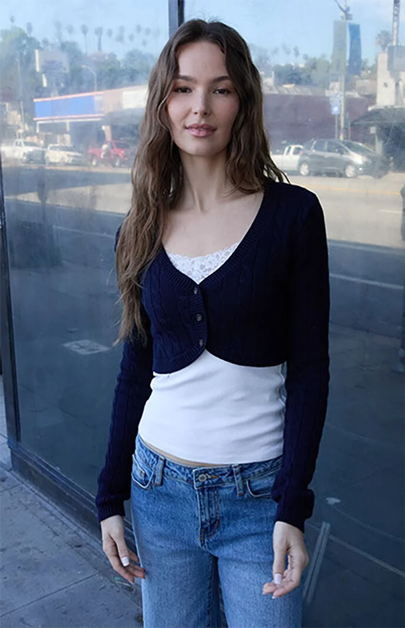 John Galt Blue Cable Knit Cropped Cardigan in Ponce, PR