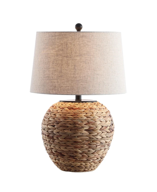 Jonathan Y Alaro 24.5" Farmhouse Coastal Water Hyacinth Basket Led Table Lamp, Dark Brown