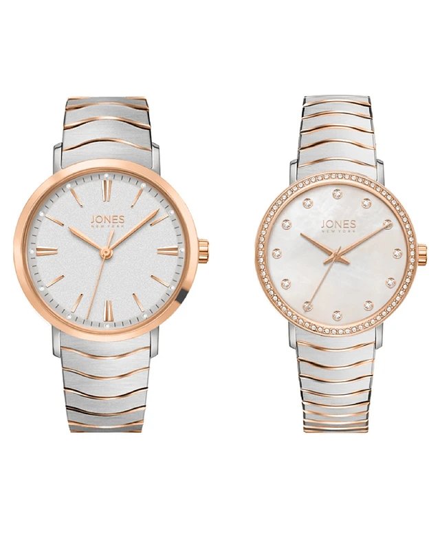 Jones New York Men and Women's Analog Two Tone Metal Alloy Bracelet His Hers Watch 42mm, 34mm Gift Set