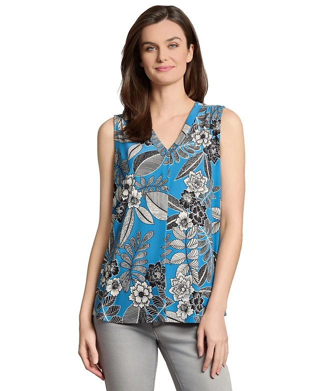 Jones New York Petite Floral-Print Sleeveless V-Neck Top