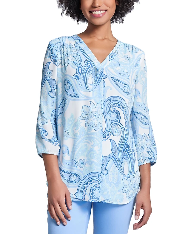 Jones New York Petite Paisley V-Neck 3/4-Sleeve Tunic