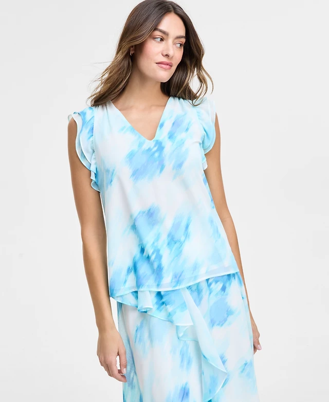Jones New York Petite Printed Ruffle-Trim Sleeveless Top