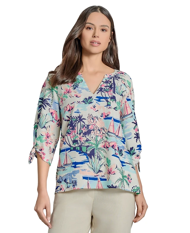 Jones New York Petite Linen-Blend 3/4-Sleeve V-Neck Tunic Top