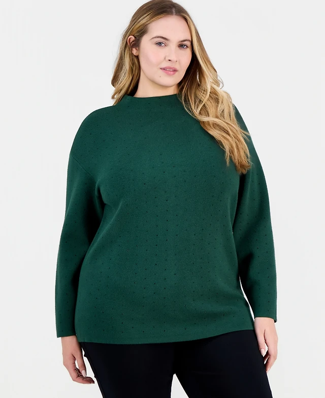 Jones New York Plus Size Embellished Funnel-Neck Sweater