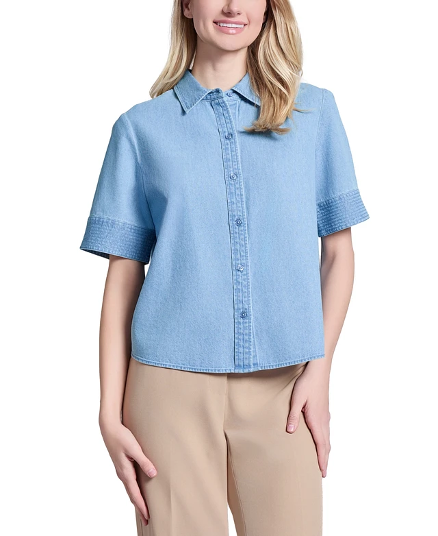 Jones New York Women's Cotton Chambray Button-Front Shirt