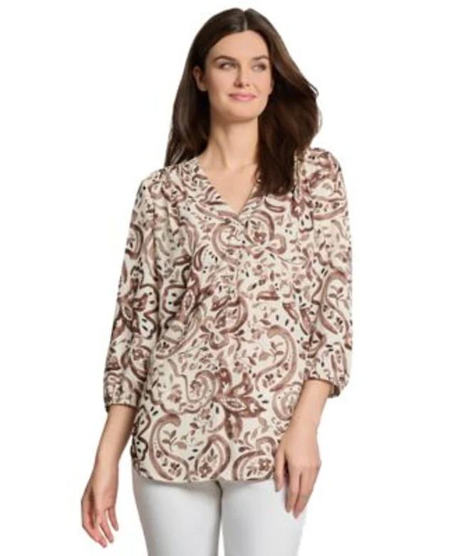 Jones New York Women's Paisley-Print 3/4-Sleeve Tunic Top
