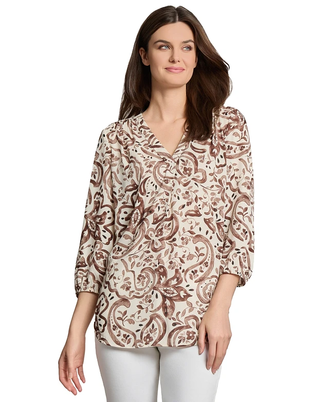 Jones New York Women's Floral Paisley-Print 3/4-Sleeve Top