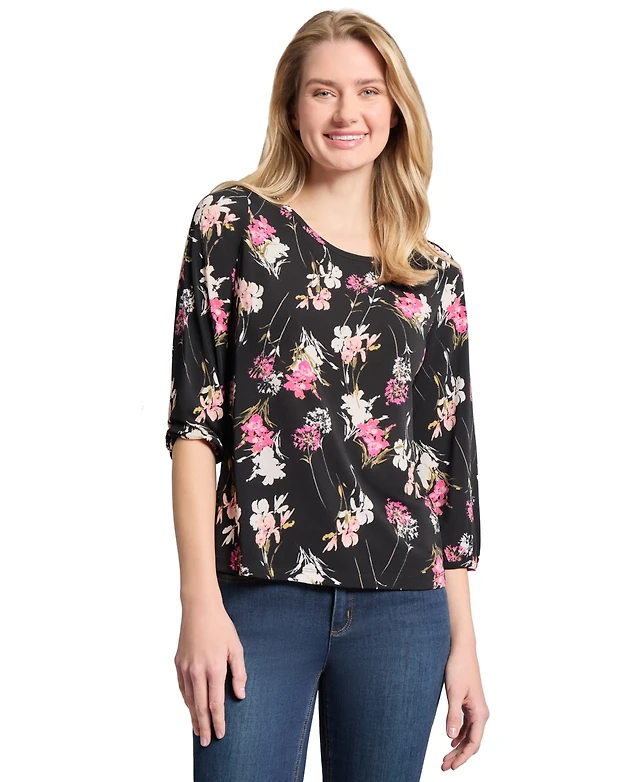 Jones New York Women's Floral Print 3/4-Sleeve Top