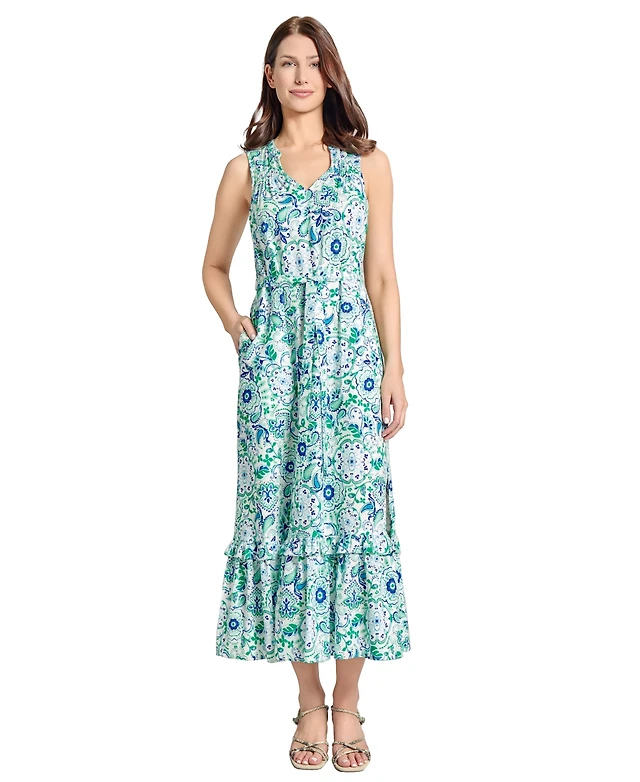 Jones New York Petite Printed Tiered Sleeveless Maxi Dress