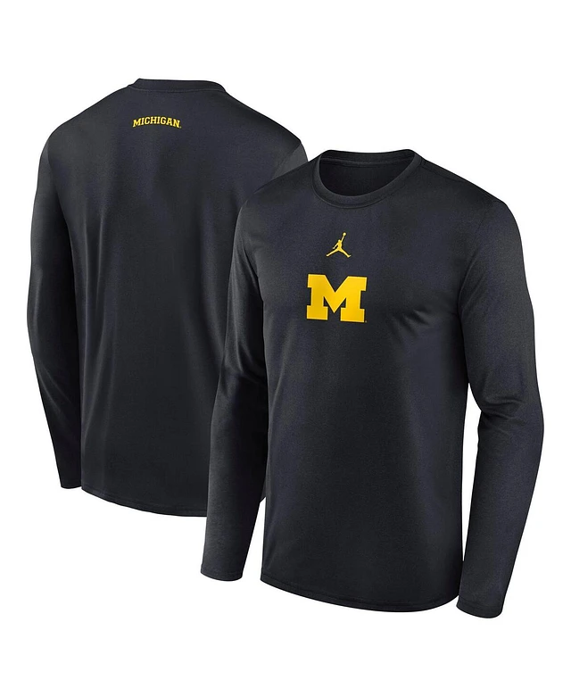 Jordan Men's Navy Michigan Wolverines 2024 Sideline Velocity Performance Long Sleeve T-Shirt