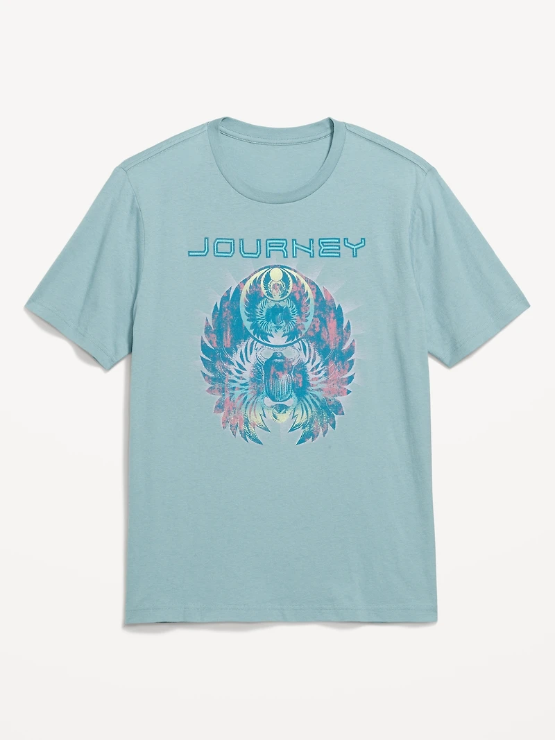 rib-knit crew neck short sleeves licensed graphic © 2025 Journey. All Rights reserved. relaxed fit hits below waist t-shirt uses our standard men's sizingmachine wash according to the care instruction label .