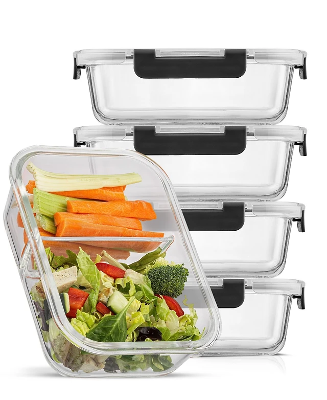 JoyJolt 3-Sectional Set of 5 Glass Food Storage Containers