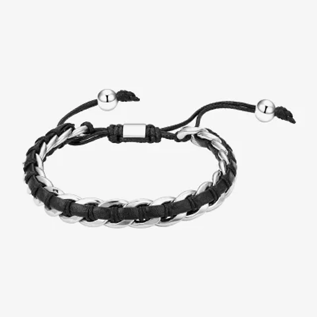 J.P. Army For Men Black Leather Link Mens Stainless Steel Bolo Bracelet