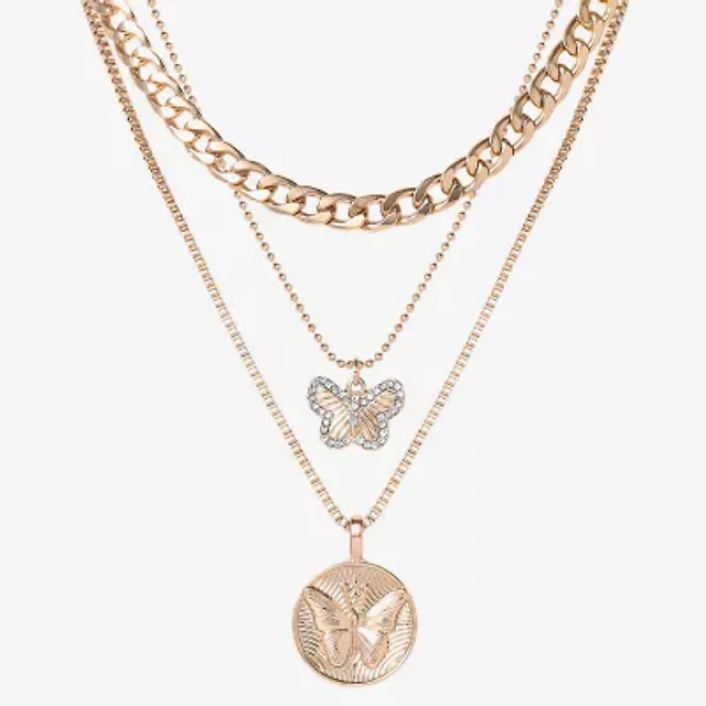 JS Jessica Simpson Gold Tone Womens Glass Butterfly Charm Bracelet