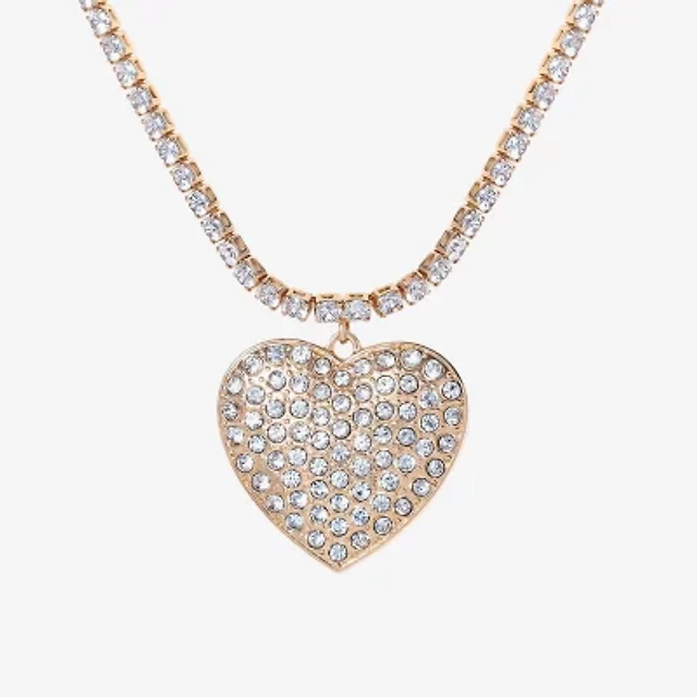 JS Jessica Simpson Gold Tone Womens Glass Alloy Heart 15 Inch Pendant Necklace