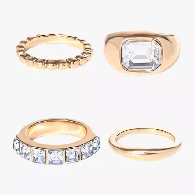 JS Jessica Simpson Gold Tone Womens Glass Ring Set