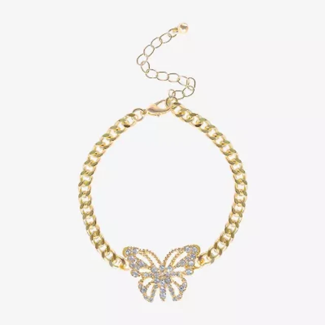 JS Jessica Simpson Gold Tone Womens Glass Butterfly Charm Bracelet
