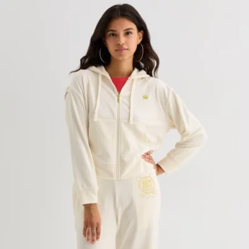Juicy By Couture Womens Juniors Hooded Lightweight Track Jacket