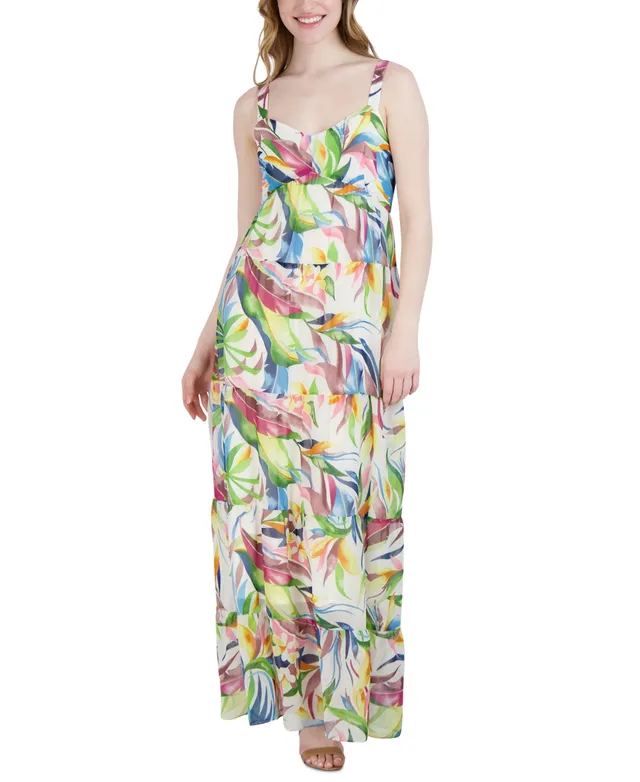 1.state Women's Printed Sleeveless Tiered Maxi Dress