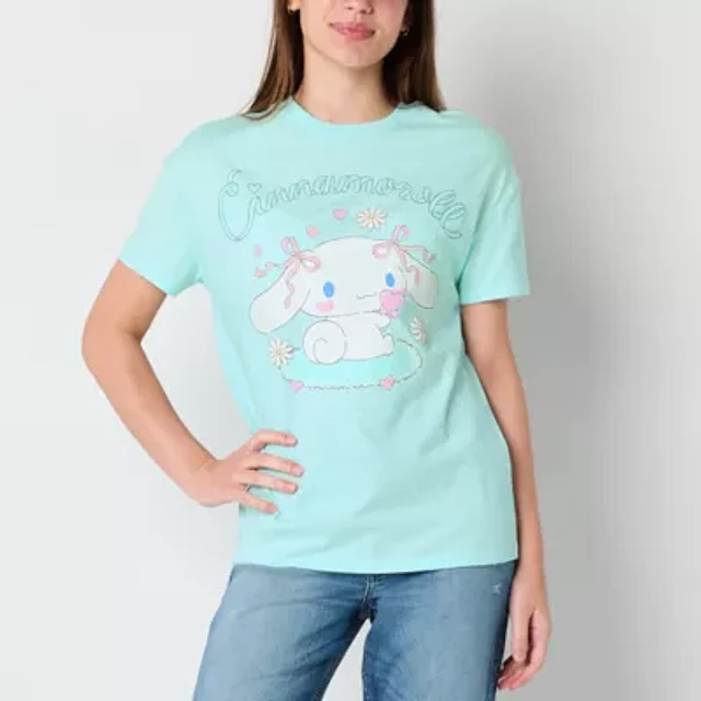 Juniors Cinnamoroll Coquette Boyfriend Womens Crew Neck Short Sleeve Hello Kitty Graphic T-Shirt