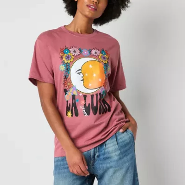 Juniors La Luna Boyfriend Tee Womens Crew Neck Short Sleeve Graphic T-Shirt