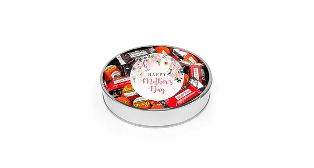 Just Candy Mother's Day Sugar Free Chocolate Gift Tin Large Plastic Tin with Sticker and Hershey's Candy & Reese's Mix , 9 Ounces