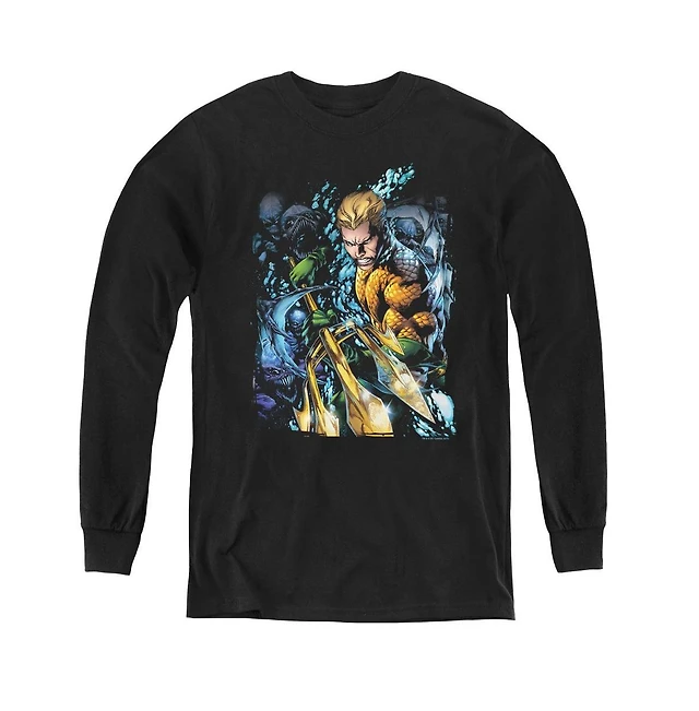 Justice League Boys of America Youth Aquaman 1 Long Sleeve Sweatshirts