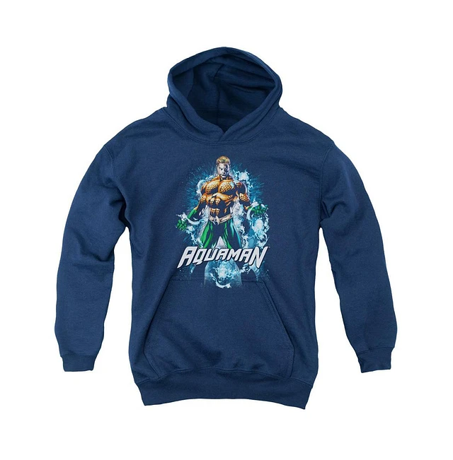 Justice League Boys of America Youth Aquaman Title Pull Over Hoodie / Hooded Sweatshirt