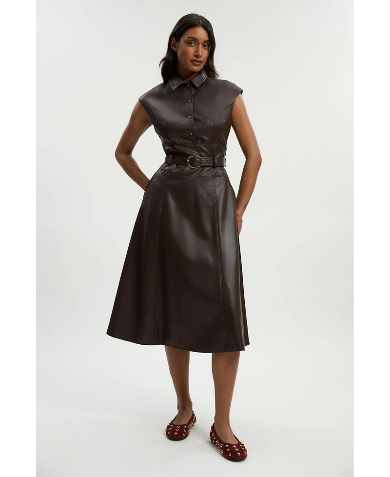 Karen Millen Women's Faux Leather Belted Midi Dress