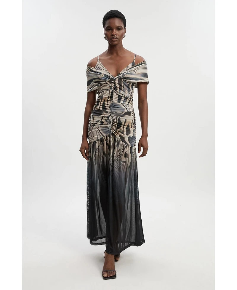 Karen Millen Women's Marble Print Mesh Plunge Maxi Dress
