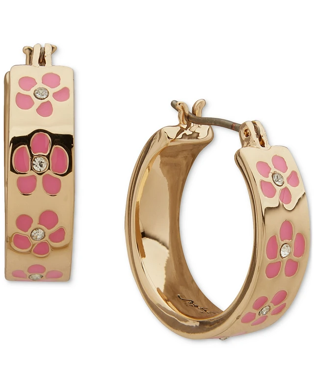 Karl Lagerfeld Paris Gold-Tone Crystal & Enamel Flower Small Hoop Earrings. 0.68"