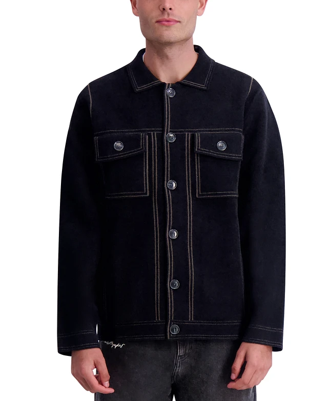 Karl Lagerfeld Paris Men's Contrast Trim Knit Shirt Jacket