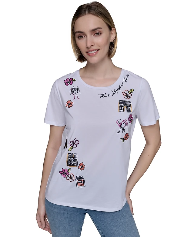 Karl Lagerfeld Paris Petite Multi Embroidered T-Shirt