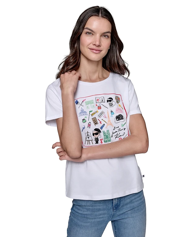 Karl Lagerfeld Paris Women's Mixed Motif Printed T-Shirt